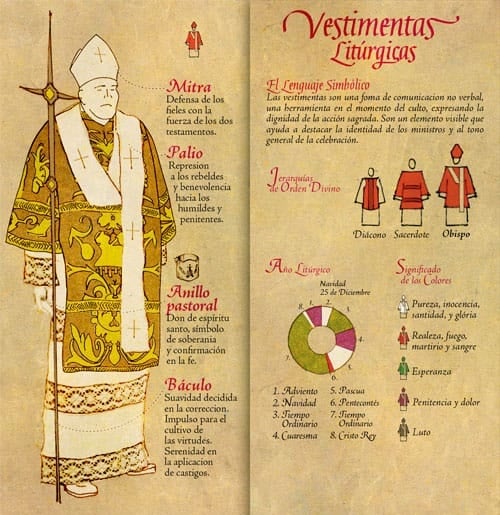 estos utilizan para la catequesis de los fieles. Entre ellos está la vestimenta que utilizaban y hoy en día se utilizan en los ritos litúrgicos y sobre todo en la celebración de la Eucaristía, comúnmente llamada Misa. Hay muchos problemas historiográficos, unos debido a la falta de documentación y pérdida en el tiempo de los primigenios ritos y rituales de la Iglesia naciente. Particularmente la Iglesia Católica de Rito Galicano (a la cual nos referiremos, luego de esta introducción en sucesivos artículos que progresivamente iremos compartiendo en nuestra página oficial) es la comunidad que surge en el territorio de las Galias -actualmente Francia- entre el siglo II y el IX. Debido a esa carencia y ante la continuidad del Rito Galicano en el tercer milenio, y queriendo preservar y dar a conocer tan antigua y valiosa expresión para la santidad de muchos, me he propuesto investigar, traducir y volcar al público en general y a los fieles en particular la riqueza sacramental encerrada en esos siglos. Iniciamos hablando de la Indumentaria. Lo primero a destacar es que, contrariamente a lo supuesto, aquellas vestiduras no eran sacras, sino que en un primer momento eran los atuendos comúnmente utilizados por magistrados romanos o altos dignatarios dentro del Imperio Bizantino. Para reconstruir los orígenes de las prendas litúrgicas en la Iglesia de rito galicano es necesario remarcar los problemas historiográficos y las fuentes fundamentales y relevantes. ![]() Capítulo I Fuentes escritas y últimas aportaciones académicas: Los registros escritos que aportan datos sobre los ornamentos para la liturgia son, al igual que las fuentes sobre el ritual de los primeros siglos, muy escasos y limitados por no existir claras convenciones o tradiciones asentadas. A lo largo de los siglos IV al VI, las vestiduras litúrgicas cobraron una creciente importancia en el ritual cristiano vinculada a la aparición y codificación de los primeros libros litúrgicos. El cambio del registro “ritual en libelli” –pequeños folletos– a manuscritos litúrgicos, posibilitó la conservación por escrito de costumbres y tradiciones rituales orales. El “Sacramentario” – libro que recopila el rito de los sacramentos -aportó mayor complicación en la liturgia. Desde finales del siglo V –y más allá del Pontifical–, se produce una asociación que concluye con una estandarización de la mayoría de las prendas de uso frecuente en la liturgia. Por su parte, la información que nos proporciona el “Ordo Romanus VIII, de vestimentis pontificis” (s. IX), es fundamental para comprender a qué estamentos clericales les corresponde el uso de determinadas vestiduras, permitiendo el reconocimiento posterior de rangos eclesiásticos en las imágenes sagradas gracias a las prendas con las que van ataviados. Tenemos también constancia de diversos escritos atribuidos a los Padres de la Iglesia, donde exponen los elementos constitutivos de la Misa, analizan el comportamiento del clero o proponen enmiendas a situaciones de mala praxis que les son coetáneas; todos ellos con elementos alusivos a las prendas y vestiduras litúrgicas. Así, el libro XIX de las “Etymologiae” de San Isidoro de Sevilla contiene una somera descripción de las prendas utilizadas por los clérigos de la Hispania tardo-antigua. Otras fuentes patrísticas como la “Regula pastoralis” (s. VI) de Gregorio Magno, la “Exegética genuina” (s. VIII) de Beda el Venerable, el “De Ecclesiasticis Officiis” (s. IX) de Amalario de Metz o el “De Institutione Clericorum” (s. IX) atribuido a Rabano Mauro, contienen referencias a usos, formas y funciones de las vestiduras sagradas en la liturgia. Además de esto, la información recogida por disposiciones conciliares, manuales, epístolas, registros y cédulas documentales sobre el uso, compra o dotación de determinadas vestiduras, nos permite evidenciar su presencia y utilización en diversos puntos de la geografía del occidente medieval a lo largo de la Alta Edad Media. Es el caso de los “Statuta Ecclesiae Antiqua” (s. V), conjunto de disposiciones reglamentarias ordenadas en cánones en las que se puede rastrear la presencia de determinadas prendas litúrgicas para diversos rangos clericales y solemnidades, o de la “Expositio Antiquae Liturgiae Gallicanae” (s. VII), cartas atribuidas a S. Germán de París, en las que se explica la forma de celebrar Misa en las iglesias de Borgoña y que mencionan prendas utilizadas en la liturgia galicana. A pesar de la literatura litúrgica y alegórica precedente, se ha tenido que esperar hasta los siglos XVIII y XIX para que se compusiesen estudios que abordasen en su conjunto los orígenes, significados y primeras formas de las vestiduras sagradas. Un precedente singular lo constituye la publicación de Filippo Bonanni, “La gerarchia ecclesiastica considerata nelle vesti sagre…” (1720) que recopila con abundantes diagramas, dibujos e ilustraciones un catálogo de las vestimentas en uso de la época –tanto dentro de la liturgia como en el uso diario–, de los diferentes grados de los órdenes eclesiásticos, detallando algunos usos medievales y posibles atribuciones de orígenes y significados. Tenemos constancia, en la misma época, de algunas otras publicaciones en las que los autores se deleitaban en componer profusos dibujos de los ornamentos litúrgicos que, desde una visión romántica, generaban atracción por su calidad y cualidades materiales. Sin embargo, el trabajo pionero en el campo es “Geschichte der liturgischen Gewänder der Mittelalters” (1856), publicado por Franz Bock. Destaca el gran esfuerzo de síntesis realizado, así como la edición con múltiples ilustraciones –dibujos e imágenes con detalles de obras de arte– que explican la evolución de las principales vestimentas a lo largo de los siglos. También dentro del tratado de Georges Rohault de Fleury dedicado a “La Messe, études