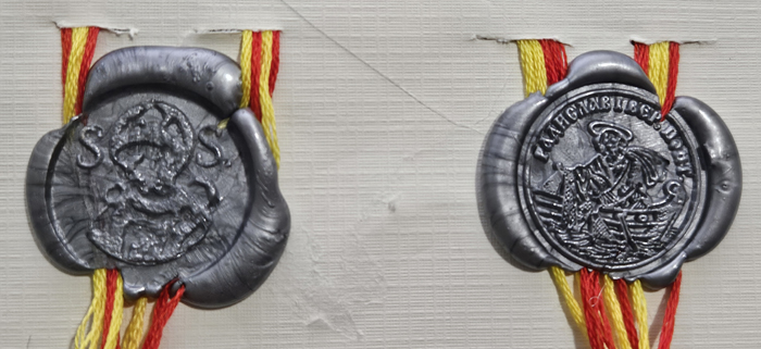 | Seal of the Fisherman (Pontifical Customs of the United Roman-Ruthenian Church) The Seal of the Fisherman is the official name of the Bulla (or Bull Seal) used by the Roman-Ruthenian Pope (Prince-Bishop of Rome-Ruthenia) to seal certain official documents in the United Roman-Ruthenian Church. It is used to seal documents known specifically as bulls, as well as Apostolic Constitutions, Apostolic Letters, and various other major documents. The current form is in two parts: the General Seal and the Particular Seal. The General Seal is always the same and bears an image of St. Stephen the Apostle, Archdeacon, and Protomartyr. The Particular Seal is so-called because it bears the name of the pontiff in Cyrillic followed by dynastic numeral and "Supreme Pontiff" in Cyrillic. That seal also contains an image of St. Peter the Apostle as a fisherman. Beginning in 2025, both parts of the seal are impressed typicall in silver wax directly to the paper. Each is applied over threads (usually red and yellow) which are themselves attached to the paper. ![]() Example of General Seal portion of the Seal of the Fisherman (left; bearing the image of St. Stephen and the letters "S. S.") and the Particular Seal portion (right; with the image of St. Peter as a fisherman and the name of the Prince-Bishop in cyrillic), both impressed in silver wax on a document. ![]() Example of the design of Particular Seal portion of the Seal of the Fisherman, with St. Peter and the name of the pontiff. Return to Main Page | ![]() Pontifical Imperial State of Rome-Ruthenia United Roman-Ruthenian Church |