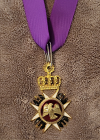 | Religious & Military Order of Sts. Anne and Alexander Nevsky (Orders of the Pontifical Imperial State) The Religious and Military Order of Sts. Anne and Alexander Nevsky is a religious-dynastic order that may be awarded to recognize commissioned officers who exhibit either military excellence consistent with Christian doctrine or excellence in Christian humanitarian service. All Grand Dukes and Grand Duchesses of Rome receive the Grand Cross of the order immediately upon receiving their title, and all Grand Dukes/Duchesses of Rome-Ruthenia receive the order immediately following their baptism. As a military dynastic order, it ranks above the Pontifical Order of the Eagle, and recipients of the Grand Cross are automatically named Knights or Dames Grand Cross of the Pontifical Order of the Eagle. The patron saints of the order are St. Anne, mother of the Blessed Virgin, and St. Alexander Nevsky, Grand Prince of Kiev. The grades of the Order are Knight Grand Cross/Dame Grand Cross and Knight/Dame of Honour. The cross of the order is worn from a purple ribbon. Knights and Dames Grand Cross use a sash in the ribbon over the right shoulder and a star in silver with a central red medallion, blue cross, and gold Roman eagle. Knights/Dames of Honour wear the cross of the order on a neck ribbon. ![]() Insignia of a Knight of Honour For more about the order, please visit its official page. Return to Main Page | ![]() Pontifical Imperial State of Rome-Ruthenia United Roman-Ruthenian Church |